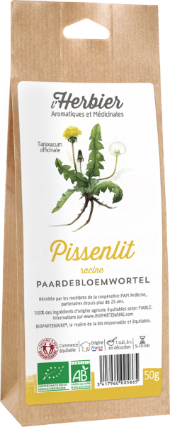 racines de pissenlit* 100% issu de l'agriculture biologique souligné : 100% du total des ingrédients d'origine agricole sont issus du commerce équitable contrôlé selon le référenciel FiABLE Plus d'informations sur www.BIOPARTENAIRE.com